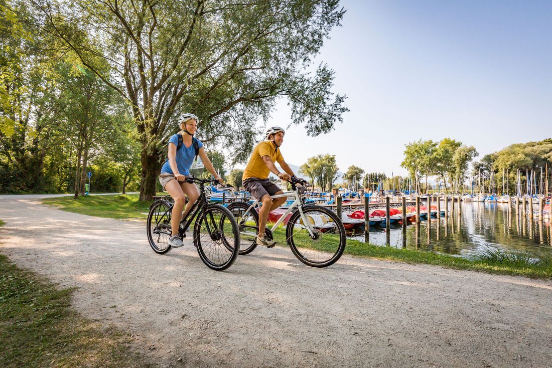 The Achental cycle path opens up the entire Achental from Chiemsee to the Tyrolean border. It runs relatively flat on well-developed, paved paths, away from roads. The route is signposted throughout. Starting in Übersee, you first head south, always keeping in mind the massive incision that the Achental cuts into the chain of the Chiemgau Alps. It continues via Grassau into the now narrowing valley. Marquartstein with its castle is the place where the Ache leaves the mountains in an impressive river loop. Via Raiten with its pilgrimage church it goes up to Mettenham and Schleching. From here, the head of the valley dominated by the Geigelstein can be reached in a few minutes near Ettenhausen. The circular route now turns back north and leads down to Unterwössen. The next place is again Marquartstein. Passing under the castle you get directly to the banks of the Achen and further down the valley via Staudach-Egerndach into the characteristic landscape of the Chiemsee high moors and back to the starting point at Übersee. The entire tour also leads to the impressive Chiemsee moors of Bergen and Grabenstätt. Abbreviations are possible in many places. Public transport Chiemsee circular bus line for the northern part of the Achental cycle path (Grassau, Übersee, Grabenstätt). All places are accessible by RVO bus lines. Übersee and Bergen have train stations with hourly train connections to Munich and Salzburg.