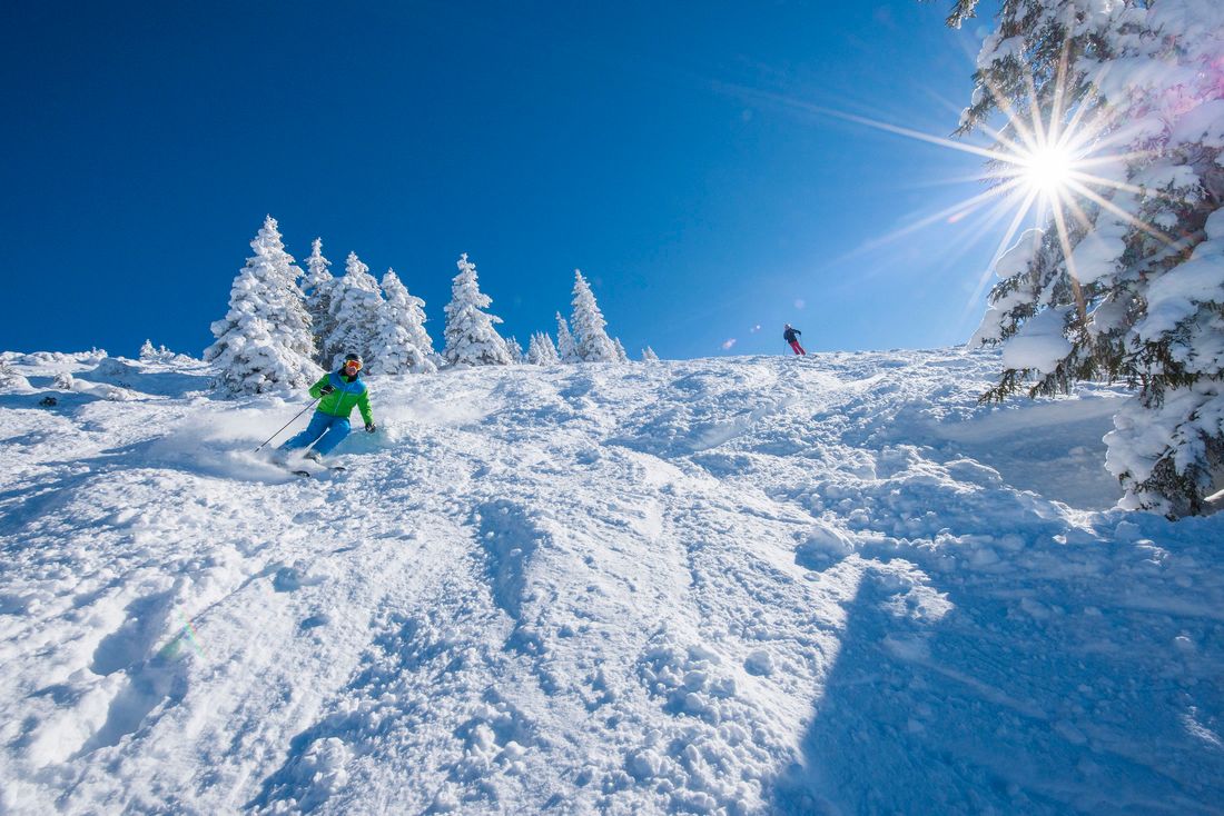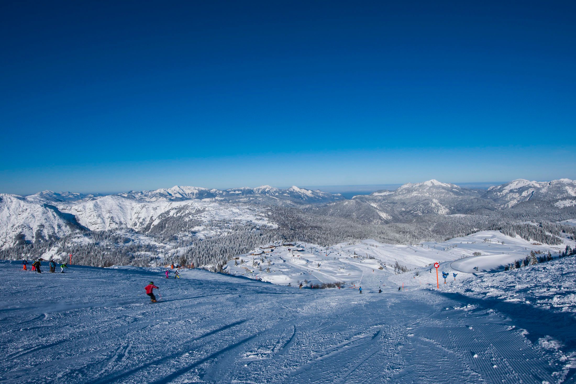 In winter, Steinplatte is a skiing paradise with 14 lifts and 16 wide, perfectly groomed slopes totaling 42 km in length, catering for all levels of difficulty. A diverse snow park will delight freestylers (4 lines in 3 sections, 1.5 km in length). On the Triassic Funline, even the littlest ones can get their first taste of banked turns, a wave track, and tunnels, playfully exploring colorful dinosaur stations. The Steinplatte ski area is connected to the family-friendly Winklmoosalm ski area on the German side.